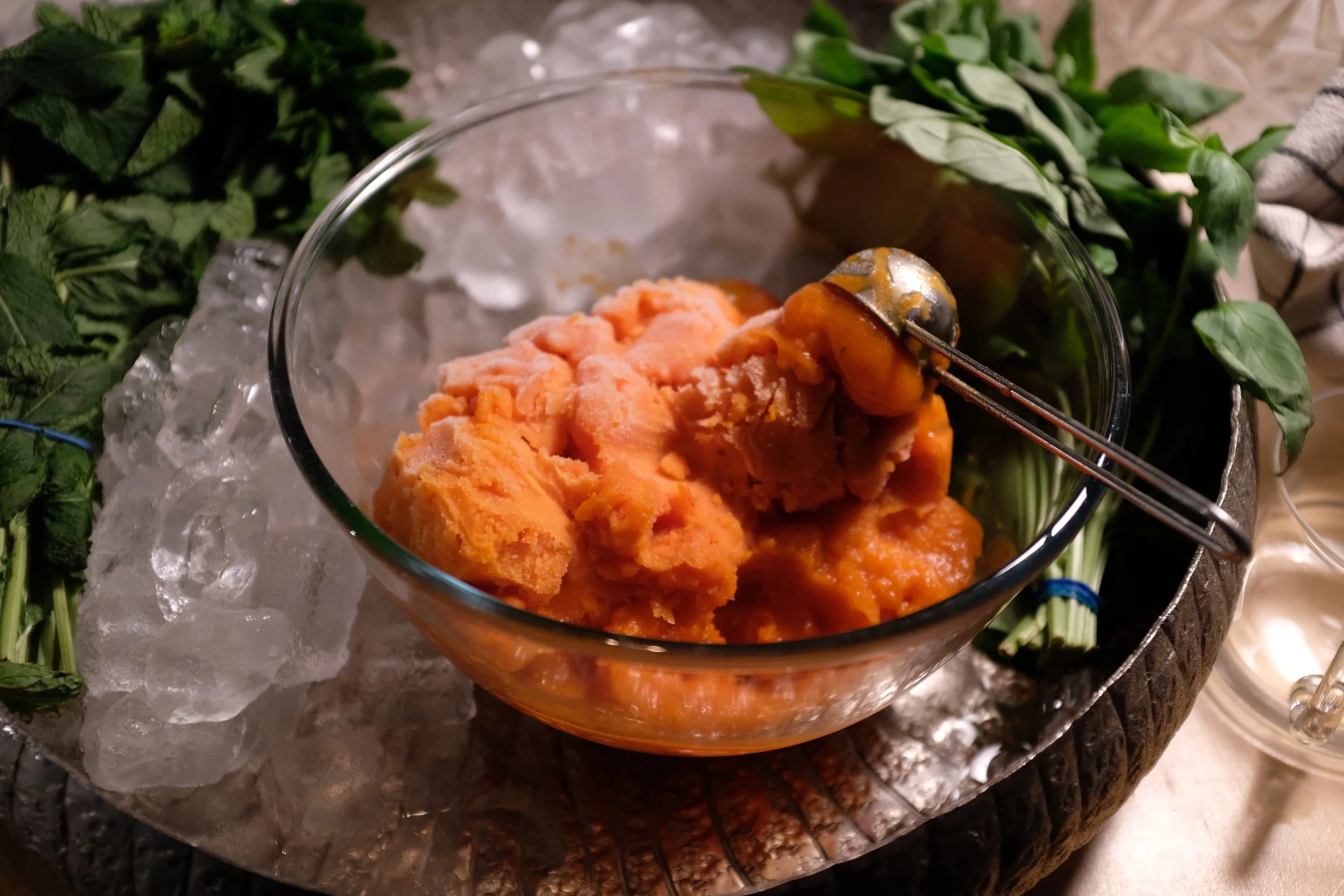 Soup for you, in this way. Tomato soup cake w/ Gazpacho Sorbet